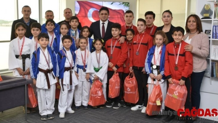 Katıldıkları turnuvalarda önemli başarılara imza atan Aliağa'nın gururu genç sporcular, Aliağa Belediye Başkanı Serkan Acar'ı makamında ziyaret etti.