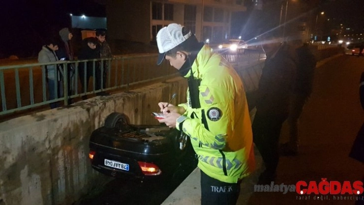 Alkollü sürücünün kullandığı otomobil su kanalına devrildi