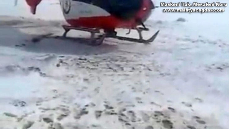 Ağrı'nın Diyadin ilçesinde kar ve tipi nedeniyle yolu ulaşıma kapanan köydeki hamile kadın ambulans helikopterle hastaneye kaldırıldı.