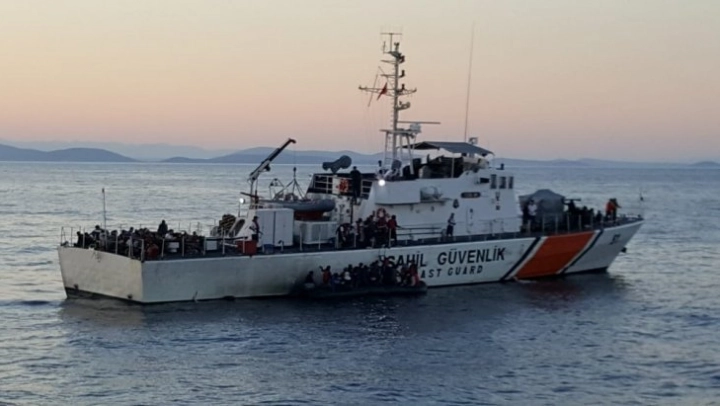 TCG Türkeli karakol gemisinin Müsellim Boğazı'nda tespit ettiği 3 botta bulunan göçmenler, Türk Sahil Güvenlik botları tarafından kurtarıldı.