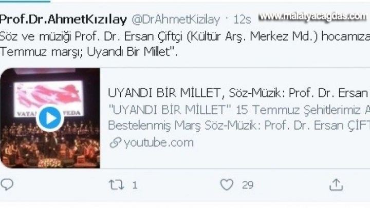 İnönü Üniversitesi Rektörü Prof.Dr. Ahmet Kızılay, sosyal medyasında yaptığı paylaşımda, “Söz ve müziği Prof. Dr. Ersan Çiftçi (Kültür Arş. Merkez Md.) hocamıza ait "15 Temmuz marşı; Uyandı Bir Millet” klibini yapanlara teşekkür” ifadelerini kullandı. İnönü Üniversitesi Kültür Araştırmaları Merkezi Müdürü Prof.Dr. Ersan Çiftçi'nin bestelediği marş, ilk olarak 30 Ekim 2019 tarihinde İnönü Üniversitesi Turgut Özal Kongre ve Kültür Merkezi'nde, 140 kişilik İnönü Üniversitesi Müzik Öğretmenliği Programı Orkestra ve Korosu seslendirmişti. 15 Temmuz şehitleri anısına bestelenen marş daha sonra klip haline getirilerek, sosyal medyada yayınlanmaya başladı.