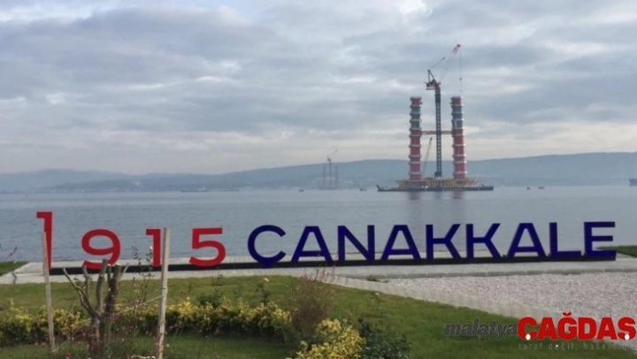 Cumhurbaşkanı Recep Tayyip Erdoğan tarafından 18 Mart 2017'de temeli atılan Çanakkale'nin Lapseki ilçesine bağlı Şekerkaya mevkii ile Gelibolu'nun Sütlüce mevkii arasında yapımı süren 1915 Çanakkale Köprüsü'nün ayakları her geçen gün biraz daha yükselmeye devam ediyor.
