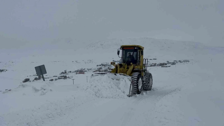 Kars'ta kar kaplanlarının 2 bin 100 rakımlı köy yollarında karla mücadelesi gece gündüz demeden devam ediyor.