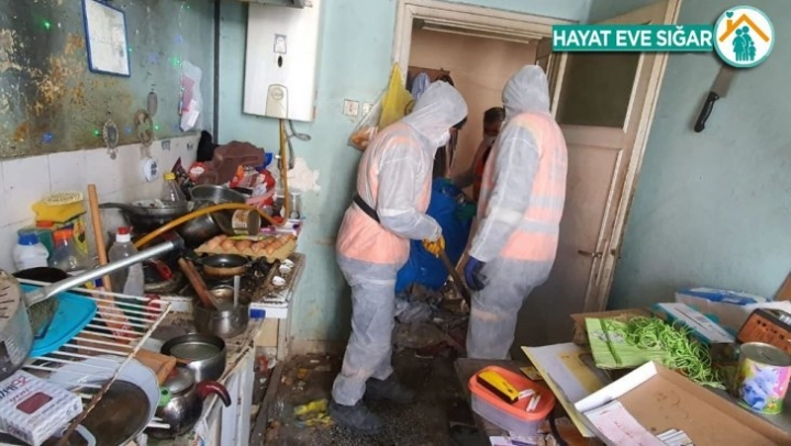 Tek başına yaşayan yaşlı bir apartman sakininin evini üçüncü kez temizlediklerini söyleyen Altındağ Belediye Başkanı Doç. Dr. Asım Balcı 'Korona virüs salgını nedeniyle tedirginlik duyan ve oluşan kokudan rahatsız olan apartman sakinleri durumu bize bildirdi. Ekiplerimiz hemen harekete geçti, koruyucu önlemlerini alarak kötü koku oluşturan ve vatandaşların sağlığı açısından tehlike oluşturan eve müdahale etti. Polislerin de eşlik ettiği bu temizlik çalışmasını, aynı evde üçüncü kez yapıyoruz. Buna rağmen evden iki kamyon dolusu çöp çıktı' dedi.