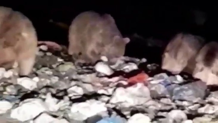Erzurum'un Şenkaya İlçesinde bulunan bir çöplüğü yiyecek aramak için ayılar istila etti. Sayıları 20'yi geçen ayıların büyüklüğü görenleri etkisi altında bıraktı.
