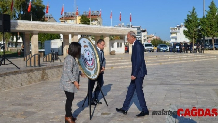 Didim Cumhuriyet Kent Meydanındaki çelenk koyma törenine Didim Garnizon Komutan vekili Üsteğmen Ahmet Altun Turgut, Belediye Başkan yardımcısı Yusuf Deveci, Didim İlçe Milli Eğitim Müdürü Recep Akdemir, Kamu kurumların müdürleri, Siyasi parti ilçe yöneticileri, kamu kurumların amirleri, Oda ve sivil toplum kuruluşlarının temsilcileri ile Eğitim Camiası ve vatandaşlar katıldı.
