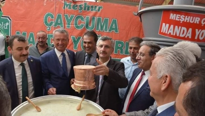 Zonguldak'ın Çaycuma ilçesinde 12-14 Eylül tarihlerinde açılan 4. Gıda Tarım ve Hayvancılık Fuarı'nda özel bakraca yapılan 250 kiloluk manda yoğurdu büyük ilgi gördü.