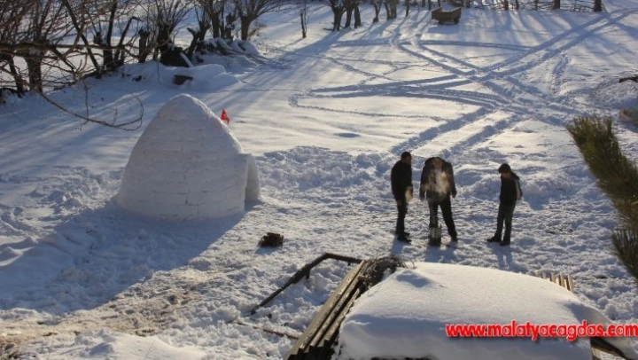 İsa Kaya ise, 'Ben, kardeşim, annem ve babamla birlikte kardan ev inşa etik. Çok mutluyuz çünkü ailecek burada hoş vakit geçiriyoruz. Bazen de köydeki arkadaşlarımız geliyorlar, onlarla birlikte oyunlar oynuyoruz, sohbet ediyoruz bu evde' diye konuştu.