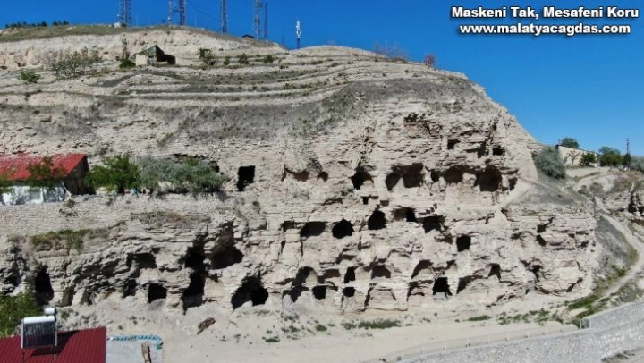 Sivas'ın Gürün ilçesinde bulunan apartman görünümlü 4 bin yıllık 'Hitit mağara evleri' çevre düzenlemesiyle yeni bir görünüme kavuşacak.