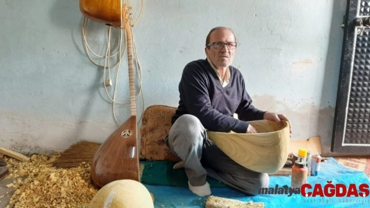 Osmaniye'nin Kadirli ilçesinde 67 yaşındaki Ahmet Erdevir, atölyeye çevirdiği evinin bir köşesinde 40 yıldır dut ağacı kütüğünden saz yapıyor.