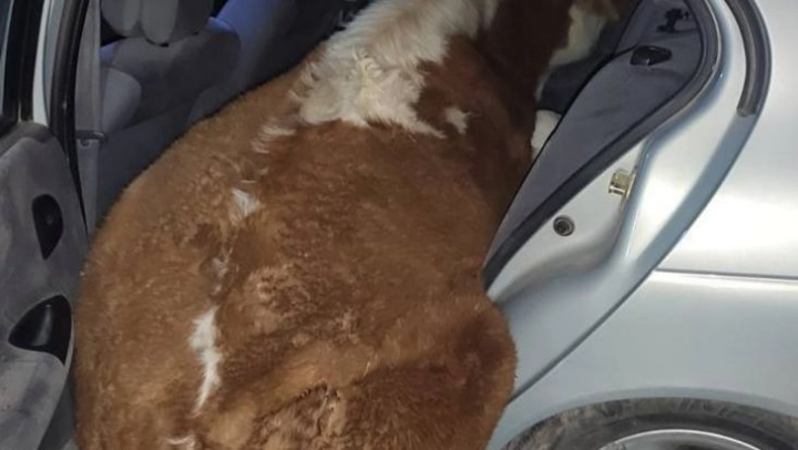 600 kiloluk ineği otomobille çalmaya kalkıştılar