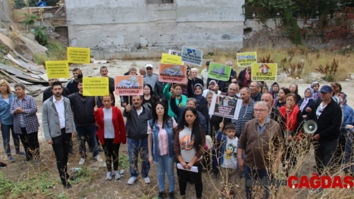 Mağdurlardan Nurlife Güney de, "Biz 7 senedir bu evin mağduruyuz. Bizi bir şekilde kandırdılar. Evimizin hemen yapılacağını söylediler. Başka problemler çıktı sonra bir inşaat firmasına verdiler. Firma başlayacağız diye bizlerden 70'er bin lira para talep etti. 40 kişi bu parayı verdi. Bizim 7 senedir ne inşaatımız var, ne de evimiz var. Hepimiz mağduruz" dedi.