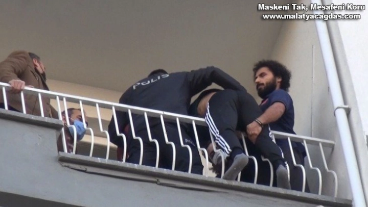 Aksaray'da kız arkadaşı tarafından terk edilen ve bunalıma giren bir kişi, 7. kattaki balkona çıkarak atlamak isterken arkadaşının ve polis ekiplerinin müdahalesiyle kurtarıldı.