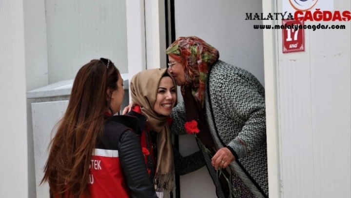 24 Ocak'ta meydana gelen 6.8 büyüklüğündeki depremin yaraları sarılmaya devam ediyor. Aile, Çalışma ve Sosyal Hizmetler İl Müdürlüğü personeli, depremin ilk anından itibaren sahada Psikososyal Destek Hizmeti (PSD) başta olmak üzere depremzedelere yönelik birçok aktivite gerçekleştiriyor. PSD hizmeti veren uzmanlar, '8 Mart Dünya Kadınlar Günü' dolayısıyla Doğukent Mahallesi'ndeki 900 konteyner evin bulunduğu geçici barınma merkezindeki kadınlara karanfil dağıttı. Uzman ekipler, Mustafapaşa Mahallesi'nde oturan ve depremde evi ağır hasar gördükten sonra konteynere yerleşen 76 yaşındaki Naciye Güney'e de sürpriz bir ziyarette bulundu. Ekipler, Güney'in yalnız kaldığı konteynere giderek karanfil verip, Kadınlar Günü'nü kutladı. 7 yıl önce eşini kaybeden ve tek başına yaşamaya başlayan Naciye Güney, ziyaretten ötürü çok mutlu olduğunu belirterek, hayatında ilk kez Kadınlar Günü'nün kutlandığını ifade etti.