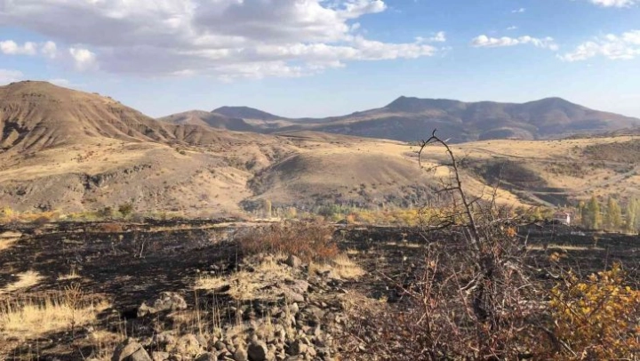 Malatya'nın Hekimhan ilçesinde çıkan arazi yangınında 8 dönüm alan zarar gördü.