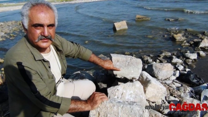 Urartu ve Karakoyunlu devletlerine başkentlik yapan Van'ın Erciş ilçesinde Van Gölü suları içinde kalan tarihi kalede Oğuz tamgalı taş bulundu.
