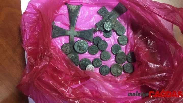 Adana Emniyet Müdürlüğü Kaçakçılık ve Organize Suçlarla Mücadele Şube Müdürlüğüne bağlı Kaçakçılık Büro Amirliği ekipleri merkez Yüreğir ilçesine bağlı Selahattin Eyyubi Mahallesi Kozan Caddesi'nde 01 CNF 40 plakalı otomobilde tarihi eser olduğu bilgisine ulaştı. Polis aracı takibe alıp durdurdu. Polis araçta yaptığı aramada bagaj kısmında poşet içinde 24 sikke, 2 haç ele geçirdi. Araçta bulunan A.K. isimli zanlı gözaltına alındı.