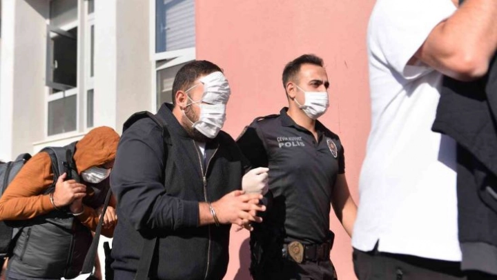 Şüphelilerin banka hesaplarından 70 milyon liralık işlem yapıldığı tespit edildi. Adliyeye sevk edilen şüphelilerden birinin tanınmamak için çift maskeyle yüzünü kapatması dikkat çekti.