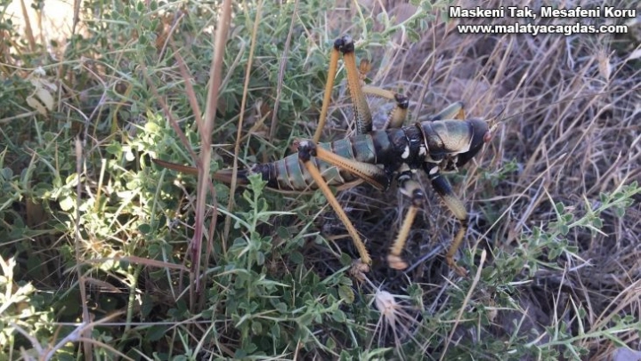Adıyaman merkeze bağlı Yaylakonak Beldesi Gürlevik Mevkiinde görülen dev çekirgeyi fark eden vatandaşlar ilk önce tedirgin oldu. İnternette yaptıkları araştırma da çekirgenin zararsız olduğunu öğrenince rahat bir nefes aldı. Çekirge sayısının çok olması ve sürü halinde istila etmesiyle ekolojik dengeye zarar verdiği biliniyor.