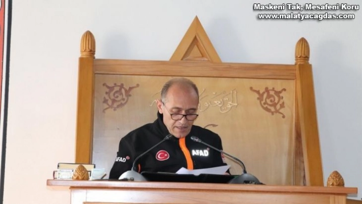 Sivas AFAD İl Müdürü Nazif Ekinci, '2021 Afet Eğitim Yılı etkinlikleri' kapsamında Cuma namazı öncesi kürsüden cemaate seslendi, sunum vaaz sistemi üzerinden tüm camilere aktarıldı.