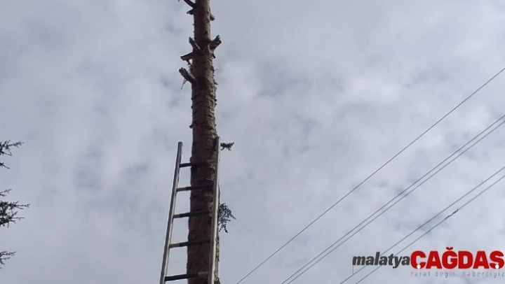 Amasya'nın Merzifon ilçesinde ağaçta mahsur kalan ve arka ayakları sakat olan kediyi itfaiye ekipleri kurtardı.
