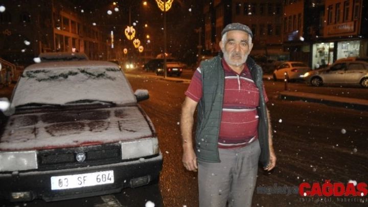 Akşam saatlerinde başlayan kar yağışı Afyonkarahisarlı vatandaşları sevindirdi