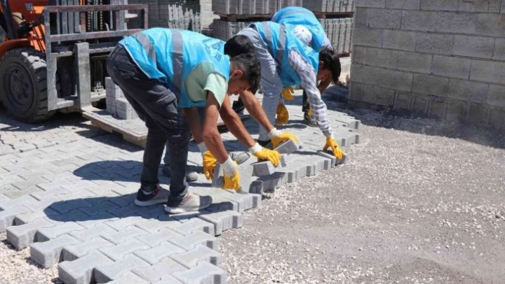Bozova Belediye Başkanı Suphi Aksoy, Gerdek kırsal mahallesinde devam eden parke taşı döşeme çalışmaların yerinde inceledi.