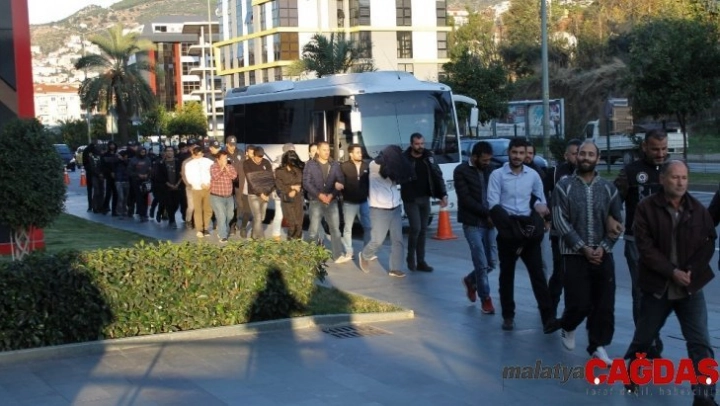 Antalya'nın Alanya ilçesinde polisin düzenlediği uyuşturucu operasyonunda gözaltına alındıktan sonra adliyeye sevk edilen 18 şüpheliden 16'sı tutuklanarak cezaevine gönderildi.