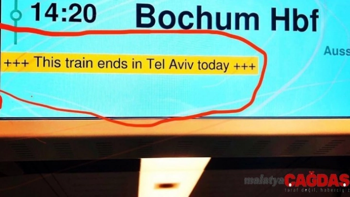 Almanya'nın Kuzey Ren Vestfalya eyaletindeki bir tren istasyonunda ekranda 'Bu tren bugün Tel Aviv'e gider' yazması krize neden oldu.