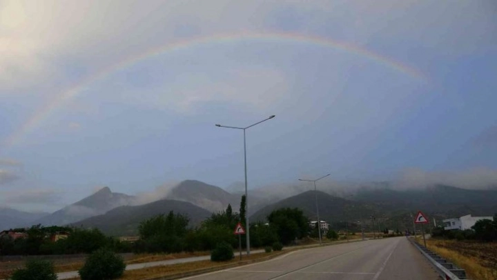 Meteorolojinin turuncu kodla uyardığı kentler arasında yer alan Osmaniye'de yaklaşık 2 gündür etkili olan sağanak yağış kent genelinde bazı olumsuzlukları beraberinde getirirken, kuvvetli yağış sonrasında Amanos Dağları üzerinde ortaya çıkan gökkuşağı görsel şölen sundu. Yağmur bulutlarının dağılması ve güneşin kendisini göstermesiyle ortaya çıkan ve kendisine hayran bırakan gökkuşağı kent genelinde seyredilebildi. Amanos Dağları semalarında renk cümbüşüyle etkisi gösteren gökkuşağı yaklaşık 1 saat boyunca izleyenleri kendisine hayran bıraktı.
