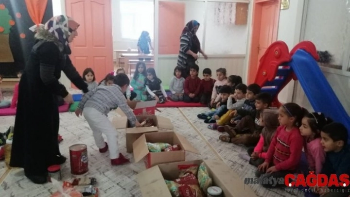 Anaokulu öğrencilerinden ihtiyaç sahibi ailelere erzak desteği