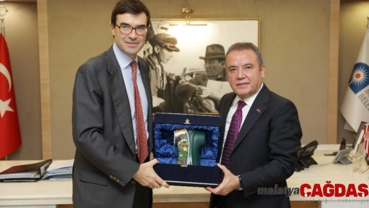 İspanya Ankara Büyükelçisi Juan Gonzalez Barba'nın ziyaretinde, İspanya Antalya Fahri Konsolosu Hasan Akıncıoğlu, İspanya İstanbul Başkonsolosu Alvaro de la Riva Guzmán de Frutos, İspanya Ankara Büyükelçiliği Ekonomi ve Ticaret Müsteşarı Fernando Hernández Domínguez de hazır bulundu. Antalya'yı ilk kez ziyaret ettiğini belirten Büyükelçi Barba, İspanya ve Türkiye arasında sıkı olan ilişkileri, şehirlerarasında da geliştirmek istediklerini belirtti.
