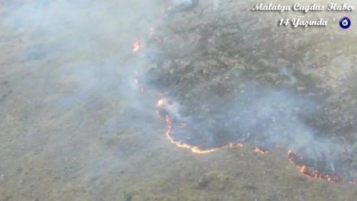Malatya'da yaşanan arazi yangını, Emniyet Müdürlüğü İnsansız Hava Araçları (İHA) Büro Amirliği dronları da aktif olarak kullanıldı.