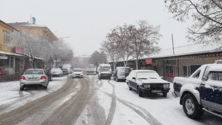 Kar yağışı, Malatya'nın Arguvan ilçesinde de etkili oldu.