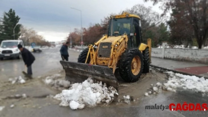 Malatya'nın Arguvan ilçesinde zaman zaman etkili olan kardan sonra yapılan çalışmalarla, ilçe merkezinin kardan temizlendiği bildirildi.
