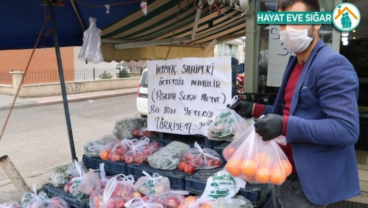 Manav sahibi Muhammet Koç, hazırladıkları meyve ve sebzeleri ihtiyaç sahiplerinin aldıklarını ifade ederek, 'İhtiyaç sahibi arkadaşlar ile dükkanlarını kapatanların ihtiyaçlarını karşılamak için böyle bir kampanya başlattık. Güzel olacağını düşünüyorum. Biz bırakıyoruz. Bazen bazı müşterilerimizin katkılarıyla da onlar veriyor. İçeriden malzemelerden buraya koyuyoruz. İhtiyaç sahipleri de gelip alıyorlar. Gelen oluyor, tezgah 3-4 defa boşalıyor' dedi.