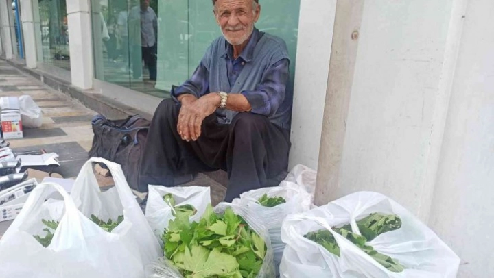 Trabzon Caddesi üzerinde bahçesinden topladığı asma yapraklarını satarak geçimini sağladığını söyleyen 8 çocuk babası Durdu Demir, yaprakların kilosunu 10-15 liradan satışa sunduğunu söyledi. Demir, 'Ben çiftçilik yapıyorum. Bahçemde bulunan üzüm yapraklarını toplayarak burada satıyorum. Yapraklar taze olduğu için ilgi de çok fazla. Topladığım yapraklar burada gelir kaynağım oldu. Kilosu ise 10 -15 TL. Burada alın terimle ekmek paramı kazanıyorum' dedi.