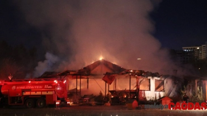 Sivas'ta meydana gelen yangında at çiftliği alev alev yandı.