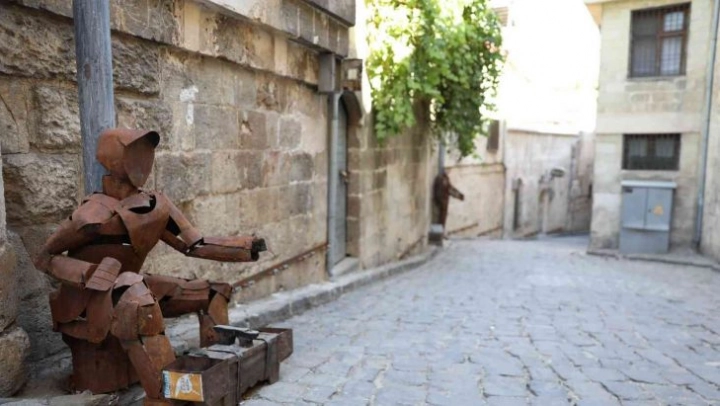Gaziantep Büyükşehir Belediyesi, kent merkezindeki tarihi Bey Mahallesi'nde 'Hayat Sokağı' olarak adlandırdığı 135 metrelik alana, atık demir malzemeleri kullanarak yerleştirdiği yaklaşık 30 heykel ile bölgenin kültürel ve sanatsal görünümüne canlılık kazandırıyor.