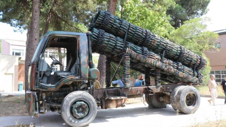 Atık malzeme ve hurda kamyondan 'mobil askeri füze rampası' yaptılar