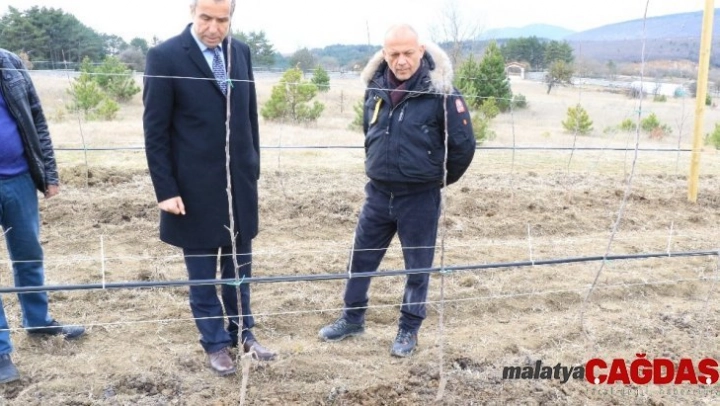 Yüklenici firma yetkilisi Mutlu Soylu ise, diktikleri fidanların ve sistemin tam bodur olduğunu ifade ederek, 'Burada iki çeşit elma fidanı diktik. Biri kırmızı, diğeri sarı elma. İkisinin de dayanıklılığı uzun, soğuk hava defosuna. Burada üçüncü yılımızda bizim beklentimiz dekar başında 3 ton, 4 yılında ise dekar başına 6 tona kadar çıkıyor. Tam bodur elmadan çok ürün alıyoruz. Bunlar yeri az kaplayıp çok ürün veriyor. İnşallah üçüncü yılda tam randımanlı ürün almaya başlayacağız' dedi.