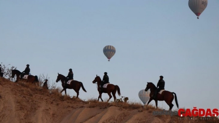 Kapadokya'da sabahın ilk ışıklarıyla birlikte havalanan sıcak hava balonlarının kalkış alanında göreve başlayan atlı birlikler gün içerisinde ise bölgenin turistik yerlerinden görev alıyor. Nevşehir'in Avanos ilçesine bağlı Paşabağları ören yerinde görev alan atlı birlikler burada ilk olarak jandarma karakolu önünde toplanıyor. Daha sonra dörderli tim şeklinde görev alanlarına giden atlı birlikler bölgeyi ziyaret eden yerli ve yabancı turistlerin imdadına yetişiyor. Bölgeyi ziyaret eden yerli ve yabancı turistler ise kendilerinin can ve mal güvenliğini korumak üzere görevli olan atlı birliklere büyük ilgi gösterirken turistler atları seviyor ve bol bol fotoğraf çektiriyor.