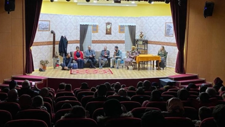 Erzurum Büyükşehir Belediyesi Şehir Tiyatrosu'nun yeni oyunu 'Bir Bayram Sabahı' Aziziyeli tiyatroseverlerle buluştu. Aziziye Belediyesi'nin ev sahipliğinde Ilıca Şehit Prof. Dr. İlhan Varank Kültür Merkezi'nde sahnelenen tek perde komedi, büyük ilgi gördü.