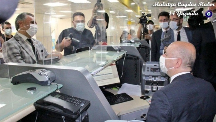 Ulaştırma ve Altyapı Bakanı Adil Karaismailoğlu, PTT Malatya Başmüdürlüğünde gişede vatandaşların işlemlerini yaptı.