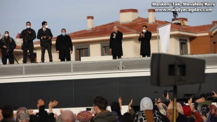 Bakan Soylu ve Kurum deprem konutları anahtar teslim törenine katıldı