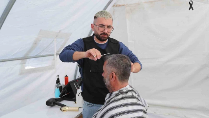 Başakşehir Belediyesi öncülüğünde Malatya'nın Yeşilyurt ilçesine gelen on berber, konteyner kentte depremzedelerin saç kesimlerini ve sakal tıraşlarını yaptı.