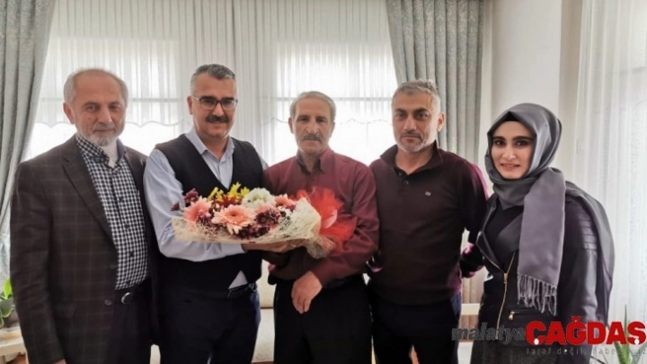 Sınıf arkadaşı Okan Çalışkan ile birlikte ilkokul öğretmenleri İdris Şahin, Hüseyin Şirin ve Salim Yılmaz'ı evlerinde ziyaret eden Ahlatcı, günlerini kutladı.Ahlatcı, öğretmenlerinin ellerinden öperek, onlara çiçek takdim etti.