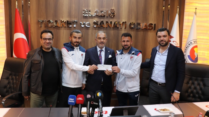 Elazığ Ticaret ve Sanayi Odası Meclis Salonunda düzenlenen toplantıya Elazığspor Başkanı Ahmet Fethi Yılmaz, Asbaşkan Mustafa Şerifoğulları ve futbolcular katıldı.