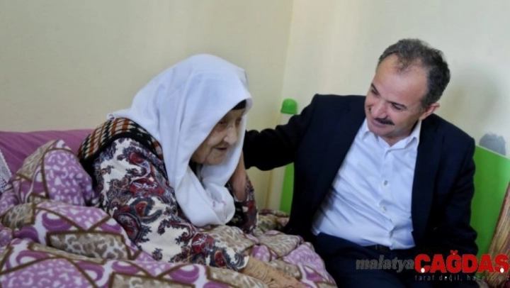 Adıyaman Belediye Başkanı Süleyman Kılınç, 102 yaşındaki Fatma teyzeyi evinde ziyaret ederek hayır duasını aldı.