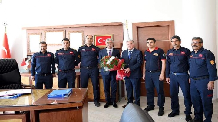 Büyükşehir Belediye Başkanı Hacı Uğur Polat, İtfaiye Teşkilatının 304.üncü kuruluş yıldönümü nedeniyle İtfaiye Dairesi Başkanı Hanifi Acar ve beraberinde İtfaiye personellerini makamında kabul etti.